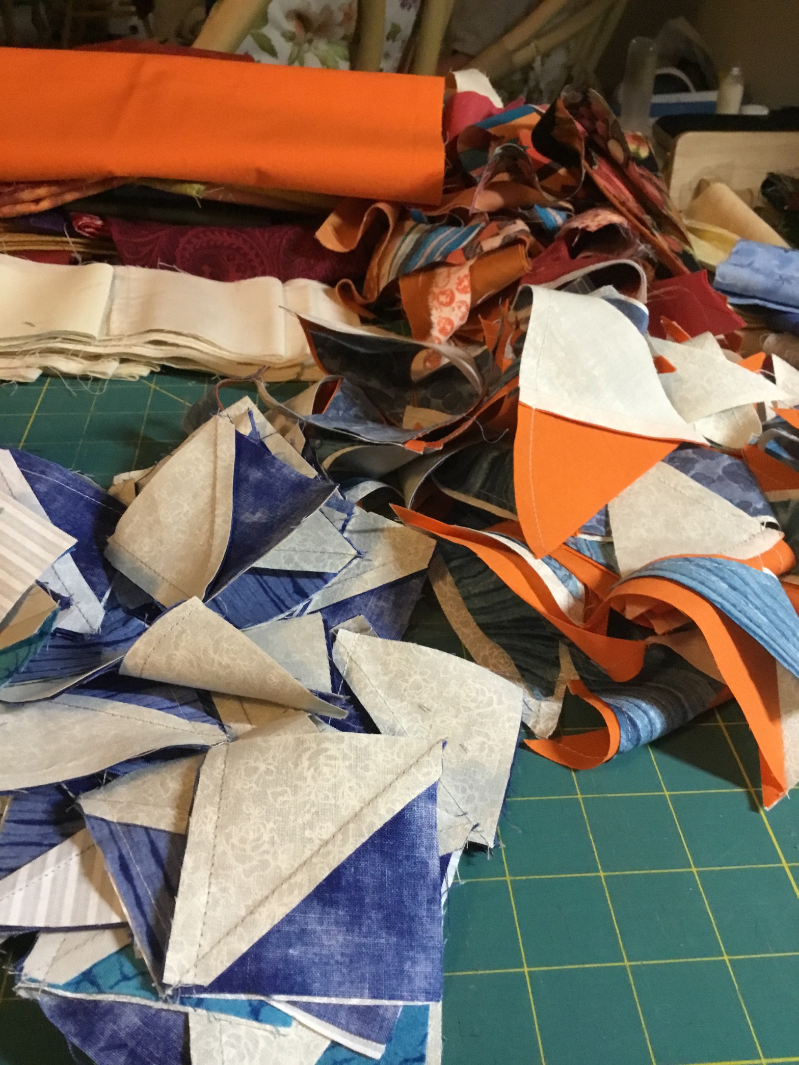 In between trying to finish up some Christmas gifts I was working on my Part 4 blocks. Strings, string, and more strings…..so much fun! On my sewing table you can see the last of my fabric bits to make parts 1 – 4. I’m doing them as leader Enders (with a few extras thrown in)ContinueContinue reading “Good Fortune Part 4”
