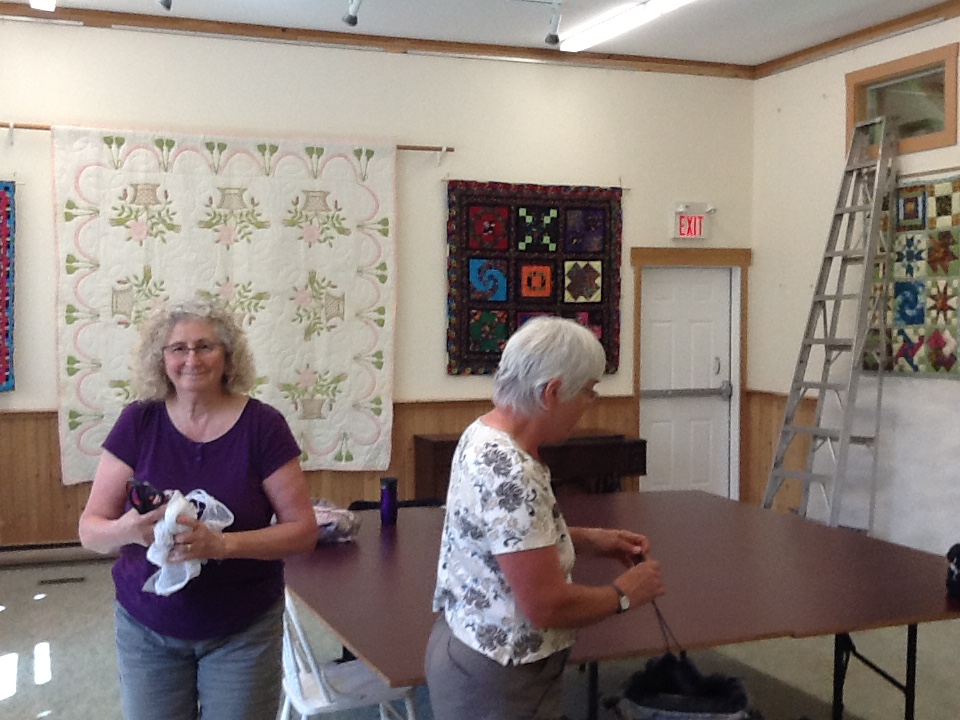 Brenda and Lois helping to hang the show